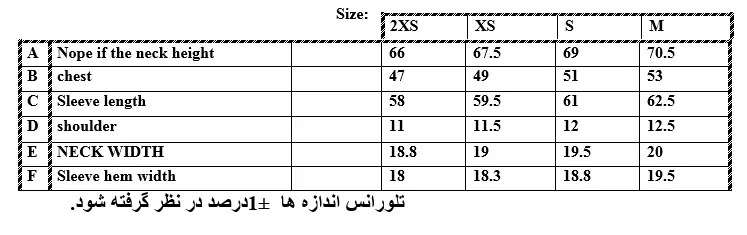 قد کار/70.5-عرض سینه/53-قدآستین/62.5