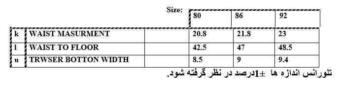 نصف دورکمر: 20.8 قد کار: 42.5 دمپا: 8.5
