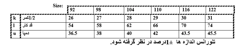 سایز ۱۱۶برای دختر ۵ساله ام گرفتم خییلی بزرگه براش .کاش سایزهای کوچکترش شارژ میشد دوباره میگرفتم.