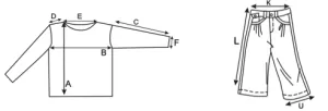 قد بالاتنه/33.5-عرض سینه/33.5 –قد آستین/12.5-قد شلوار/62.5