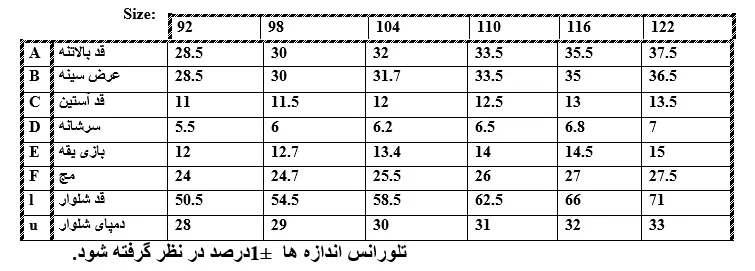قد بالاتنه/30-عرض سینه/30 –قد آستین/11.5-قد شلوار/54.5