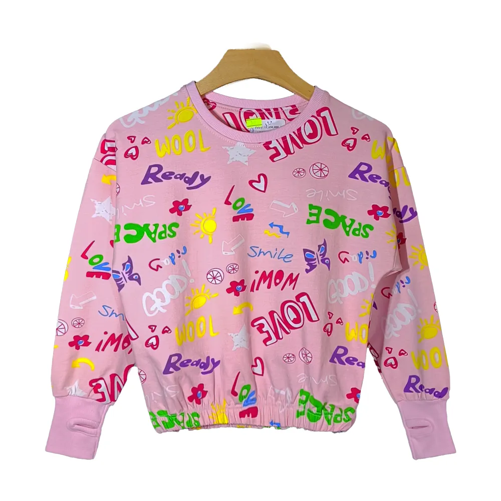 بلوز نیم تنه طرح LOVE آستین فینگردار دخترانه