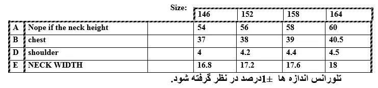 سایز 152اندازه-قد کار/56-عرض سینه/38