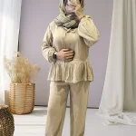 قد کار از گوشه یقه 73 سانت- عرض سینه58 سانت- قد آستین از گوشه یقه تا مچ69 سانت-½ دور کمر(پشت کش) 52 سانت- قد شلواربا کمر 108 سانت- دور دمپا55 سانت